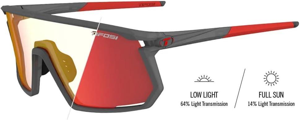 Tifosi Moab Cycling Glasses – Ideal For Cycling (Gravel, MTB & Road), Baseball & Pickleball – Shatterproof Polycarbonate Lens(Satin Vapor (Clarion Red Fototec))