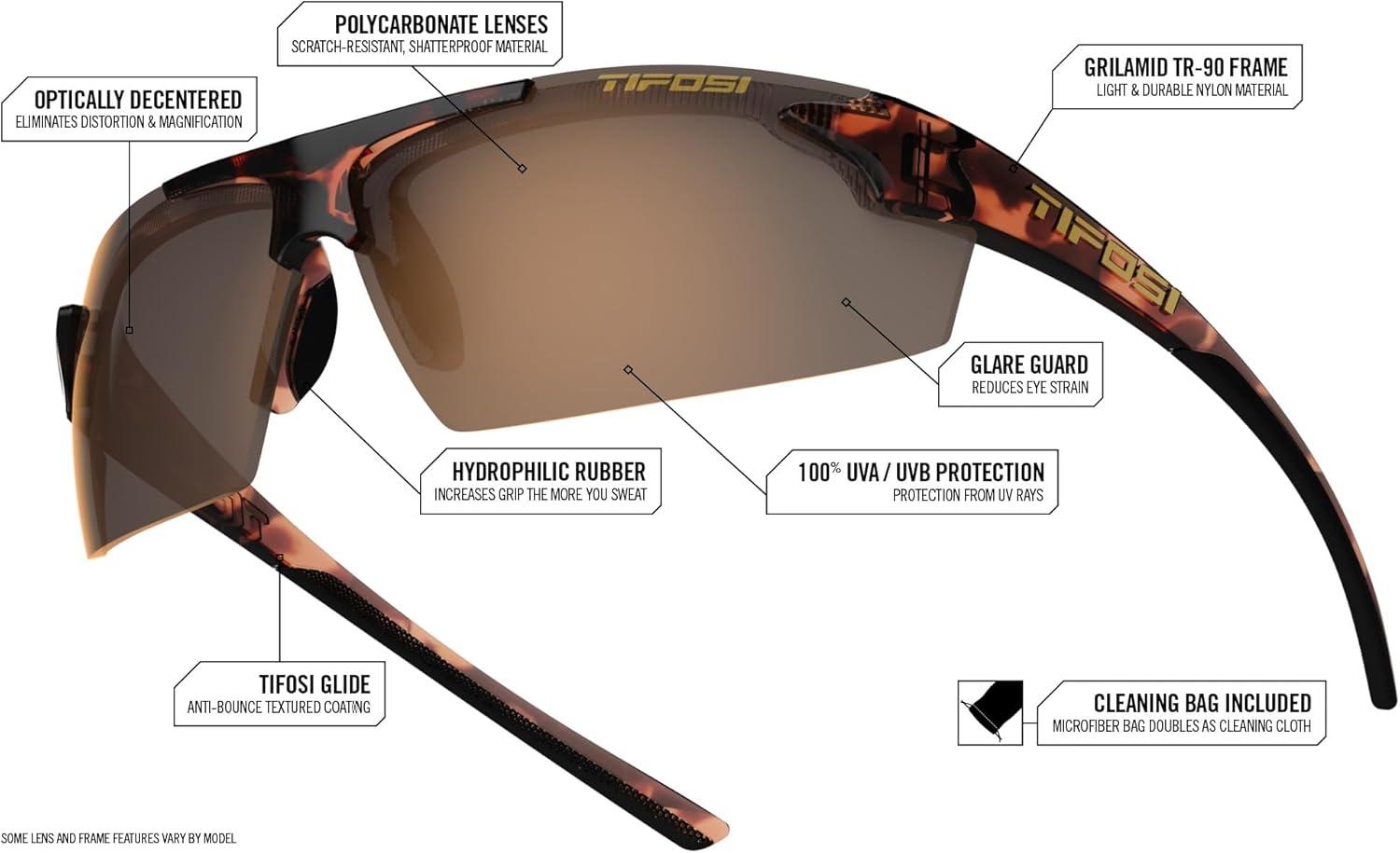 - FRAME TECHNOLOGY ➤ Hydrophilic nose pads that increase grip the more you sweat, Tifosi Glide technology allows the frame to slide on comfortably and provide an anti-bounce fit
